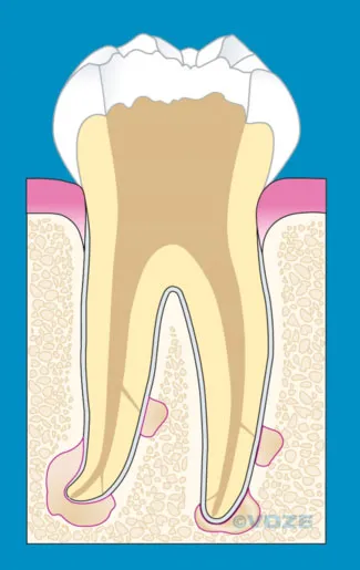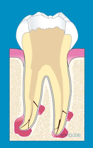 Ziel der Wurzelkanalbehandlung ist es, das sogenannte Gefäß–Nervenbündel aus dem Wurzelinneren zu beseitigen. Anatomisch ist der Zahn jedoch in ein Zahnfach eingebettet. Verursachen Bakterien aus dem Inneren des Zahnes nun eine akute Entzündung dieses Zahnfaches, kann es zu Schmerzen, Schwellungen und Eiterbildung kommen.