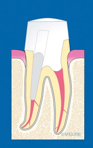 Viele wurzelbehandelte Zähne sind auf Grund ihres großen Defektes bruchgefährdet. Deshalb wird nach einer Wurzelkanalbehandlung der Zahn häufig mit einer Krone versorgt, um ihn zu stabilisieren. Bei ausgedehntem Substanzverlust kann es auch notwendig sein, den Zahn mit einem Wurzelstift wieder aufzubauen.